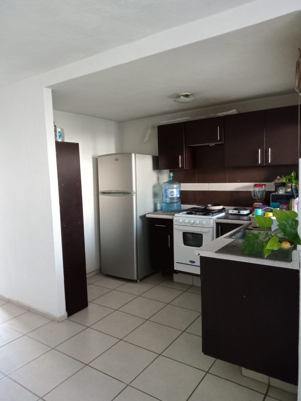 En planta baja encontrarás un espacio funcional de sala–comedor con excelente distribución, ideal para crear un ambiente cálido y cómodo. La cocina integral con muebles en tono chocolate ofrece buen almacenamiento y una estética contemporánea, perfecta para el día a día. Además, cuenta con área de servicio/patio de lavado, ventilado y práctico para mantener todo en orden.